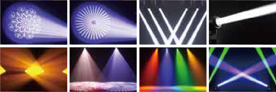 Fixed Gobo: 12 + Blank, two-way variable speed rotation, with variable speed shaking effect, two-way variable speed flowing water effect, built-in efficient hall device
