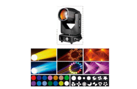 Fixed Gobo: 12 + Blank, two-way variable speed rotation, with variable speed shaking effect, two-way variable speed flowing water effect, built-in efficient hall device